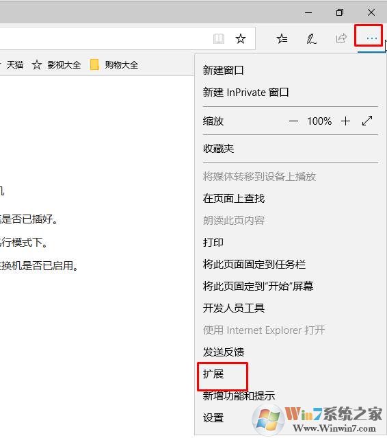 1、首先我們打開Edge瀏覽器,然后點擊右上角的,點點點,然后選擇“擴(kuò)展”,圖示如下: