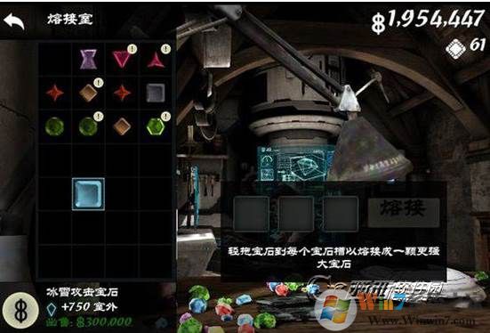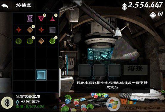 最后,我們?nèi)毷懈罱衬睦?,把抽到?0W寶石放到融合槽里,會(huì)發(fā)現(xiàn)在融合槽里可以賣掉,錢增加了30W。