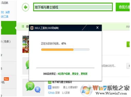 2、接著在最上方的搜索界面上面,我們輸入地下城與勇士掉線,之后點(diǎn)擊右側(cè)的搜索,出現(xiàn)搜索結(jié)果。