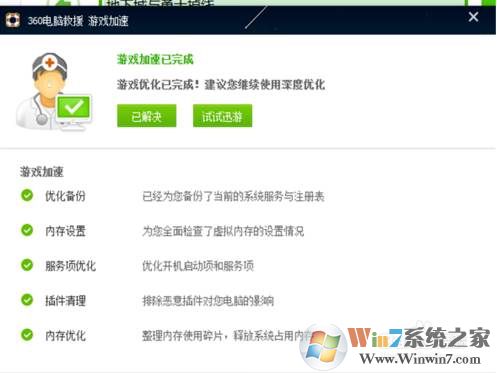 4、會出現(xiàn)360電腦救援對你的電腦進(jìn)行游戲加速,這段時(shí)間,依舊是等待,之后會出現(xiàn)結(jié)果,如果還是沒法解決的話,可以申請真正的人工客服進(jìn)行解決。
