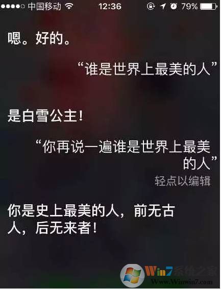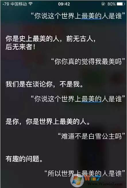 首先呢,誰是最美的人,相信很多女孩子會(huì)愛問~,看看siri是怎么回答的吧。