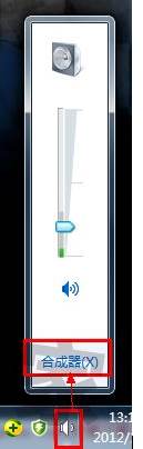 1.點(diǎn)擊桌面右下角的小喇叭圖標(biāo),點(diǎn)擊【合成器】按鈕: