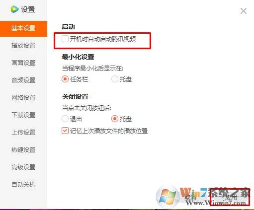 2、在設(shè)置的第一個(gè)頁面,我們就可以看到,啟動(dòng)項(xiàng)的設(shè)置了,取消勾選 開機(jī)時(shí)自動(dòng)業(yè)騰訊視頻的選項(xiàng)。應(yīng)用即可。