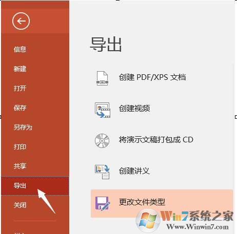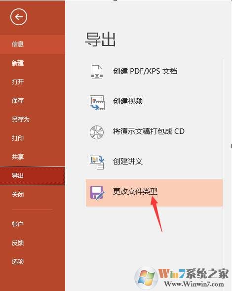 3、在“導(dǎo)出”下點(diǎn)擊“更改文件類型”。