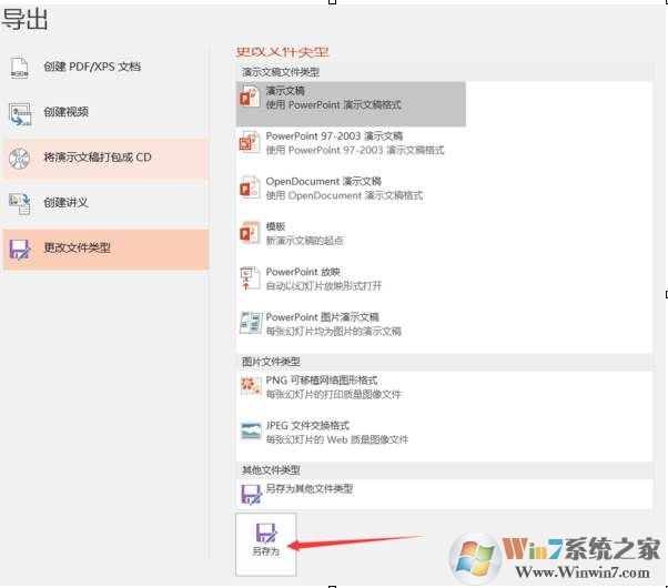4、在“導(dǎo)出”下點(diǎn)擊“另存為”。