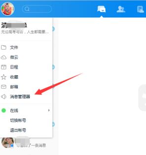 1、首先登錄TIM后,點(diǎn)擊左上角的頭像,然后選中消息管理器。