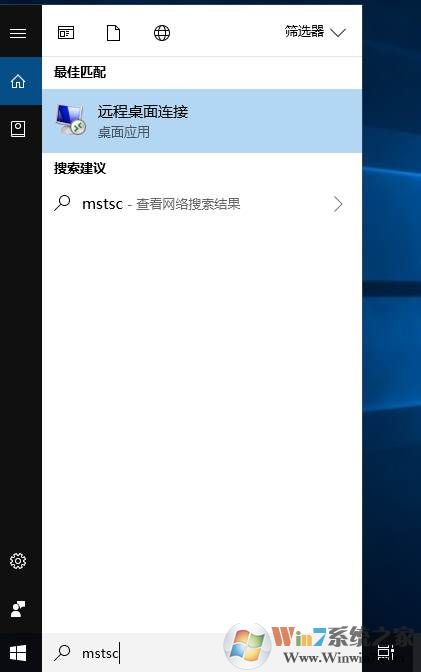 1、在搜索框中輸入“ mstsc ”回車;也可以按下WIN+R,然后輸入 mstsc 遠(yuǎn)程桌面連接命令;