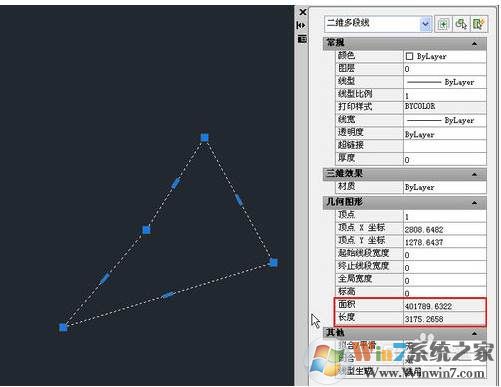 1、在特性面板(CTRL+1)或用列表查詢LI命令就可以知道這些圖形的面積了,如下圖所示。