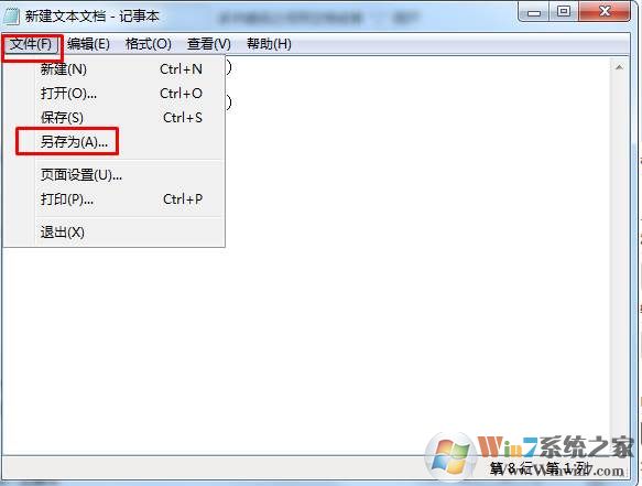 3、點(diǎn)擊記事本上面的文件—另存為;