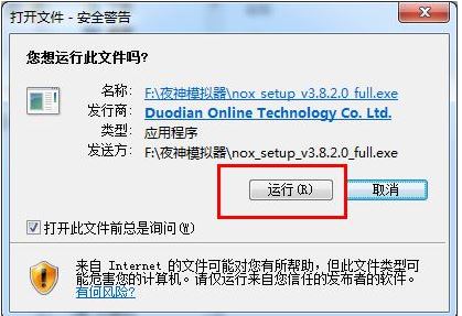 二、雙擊您下載的夜神模擬器.exe文件,點擊“運行”-“自定義安裝”