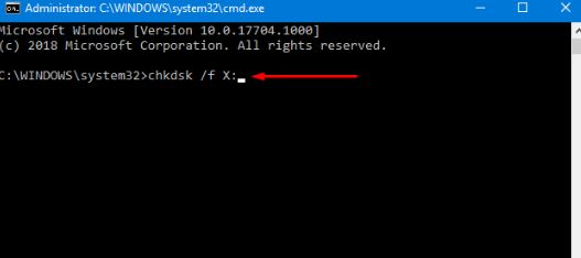 6、然后在命令提示符中鍵入:chkdsk /f X: (將X替換為當(dāng)前操作系統(tǒng)的驅(qū)動(dòng)器號(hào));