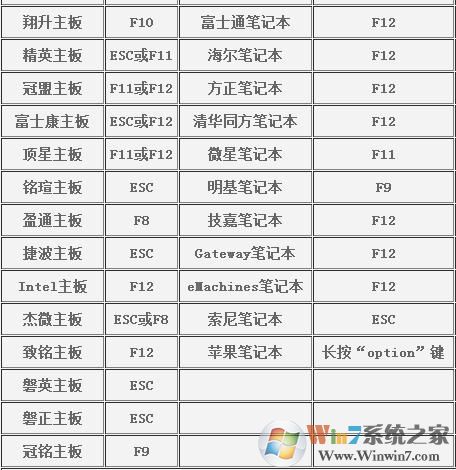 4、不同主板,電腦品牌的開(kāi)機(jī)鍵如下:
