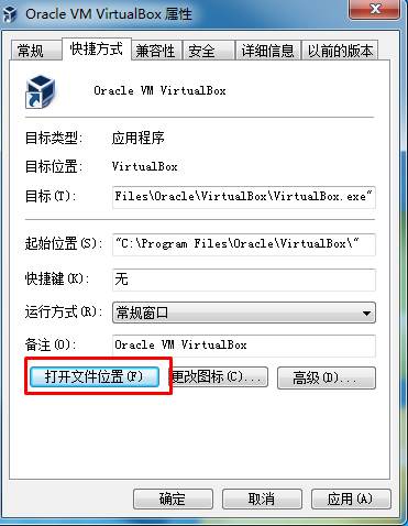 3、右鍵點(diǎn)擊VBOX虛擬機(jī)圖標(biāo),屬性,然后點(diǎn)擊打文件位置;