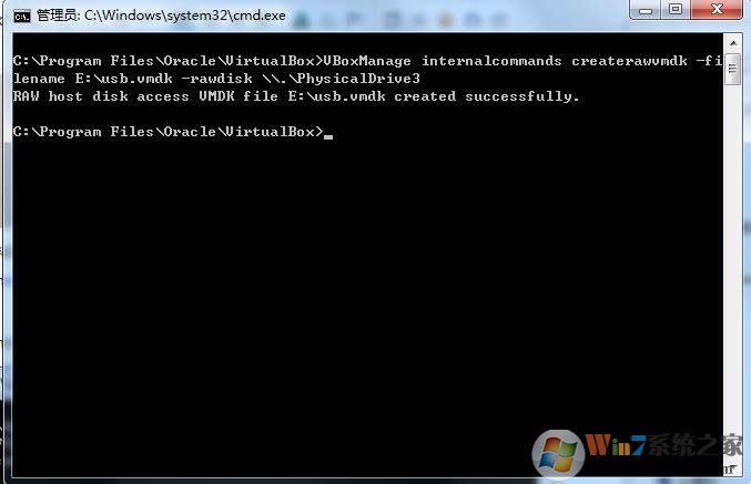 5、然后在命令提示符中 粘貼 以下命令 回車(chē)執(zhí)行(X改成你的U盤(pán)編號(hào))意思就是在E盤(pán)生成一個(gè)對(duì)應(yīng)U盤(pán)的vmdk虛擬文件。