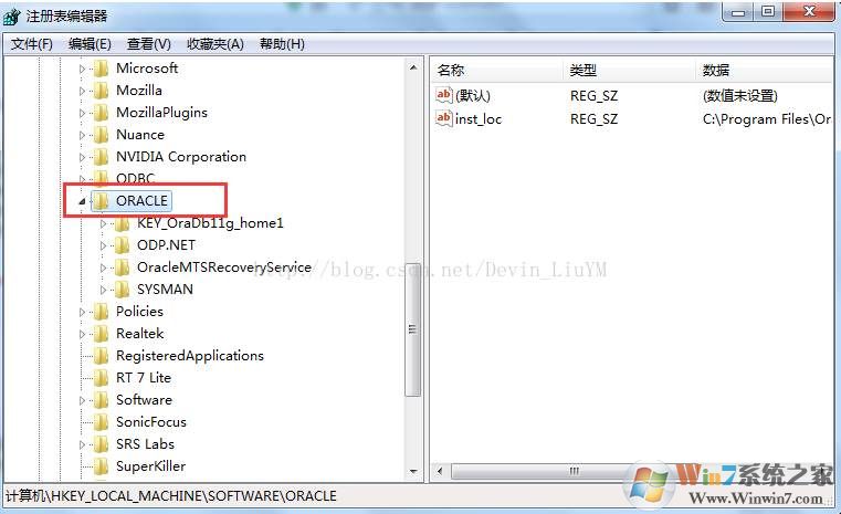 HKEY_LOCAL_MACHINE\SOFTWARE\ORACLE