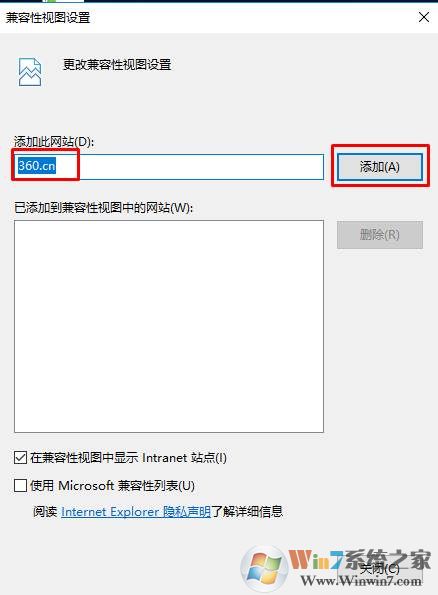 3、把你要以兼容性視圖顯示的網(wǎng)站網(wǎng)站添加入去;