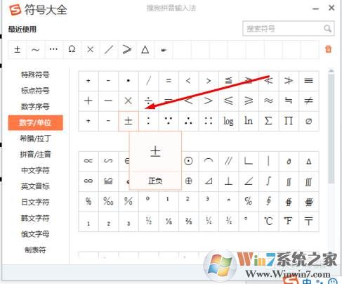 2、在數(shù)字/單位,找到正負(fù)號,點擊即插入文本。
