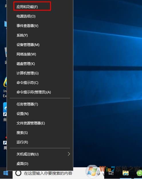 1、右鍵點(diǎn)擊開(kāi)始菜單,然后點(diǎn)擊“應(yīng)用和功能”(如果是舊版的Win10 會(huì)打開(kāi)舊板的控制面板,新版Win10已經(jīng)取消)