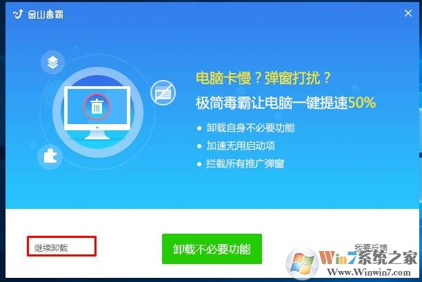 4、還是點(diǎn)仍然卸載,感覺(jué)金山毒霸有點(diǎn)啰嗦啊。
