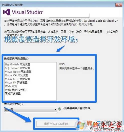 5、visual studio 2015安裝完成,打開visual studio 2015選擇一下自己需要的開發(fā)環(huán)境即可:
