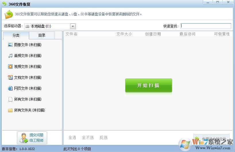 4、安裝好之后,我們?cè)冱c(diǎn)擊 文恢復(fù)功能,打開,并且選擇你刪除文件在哪個(gè)盤,或者選擇一下你刪除文件的類型,再點(diǎn)開始掃描
