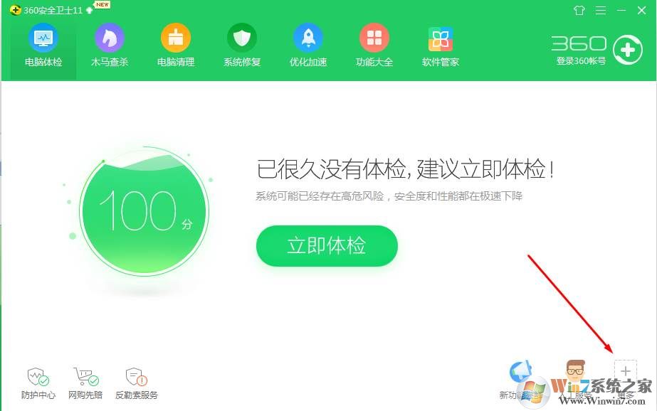 2、安裝之后,打開360安全衛(wèi)士,然后點(diǎn)擊右下角的“+”加號(hào) 更多;