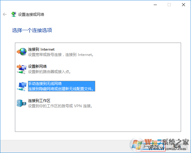 2、選擇 手動(dòng)連接到無線網(wǎng)絡(luò),點(diǎn)擊 下一步,如下圖: