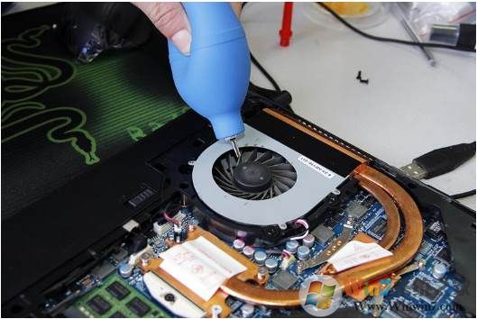 散熱器風(fēng)扇部分是灰塵最為集中的地方,風(fēng)扇部分最好不要強(qiáng)拆。建議用刷子除去表面灰塵,用皮吹子對(duì)扇葉進(jìn)行徹底清理。注意一定要及時(shí)擦拭你拆本的工作臺(tái)、灰塵堆積的到處都是就不好清理了。