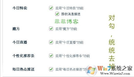 找到什么“今日特賣”、“個性化推薦條”、“今日直播”等等根本用不到的話,統(tǒng)統(tǒng)點擊去掉前面的“對勾”關(guān)掉,瞬間趕腳全世界都安靜了。。