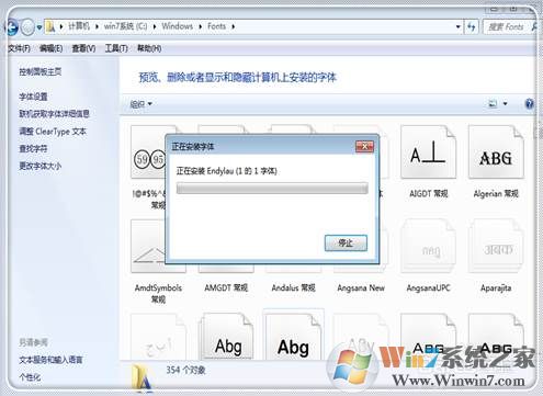 2、下載完成后,復(fù)制字體到C: \Windows\fonts\文件夾下。然后就開始安裝Endylau.ttf字體了,
