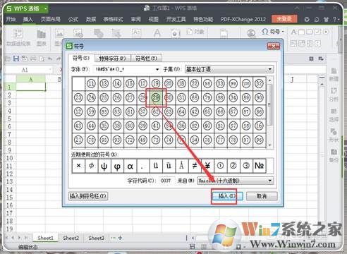 5、帶圈的字體出來了,隨便點擊喜歡的,然后點擊“插入”。