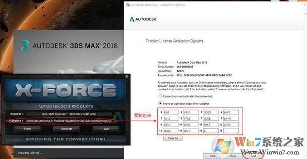 14、將生成的激活碼復制到入內,點擊Next