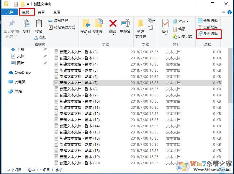 1、在很多文件中,單擊選擇中你不想要選取的文件,然后點擊上面的主頁,這時可以看到最右側(cè)的【反向選擇】;