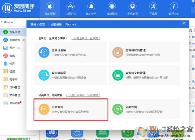 由于從高系統(tǒng)版本降級(jí)的低系統(tǒng)版本是不能“保留用戶資料刷機(jī)”,而且iOS 12全備份設(shè)備無法恢復(fù)到低版本系統(tǒng)中。所以降級(jí)前先在“備份/恢復(fù)”中分類備份手機(jī)內(nèi)的數(shù)據(jù)。如果您在升級(jí)前已備份資料則無需重新備份。