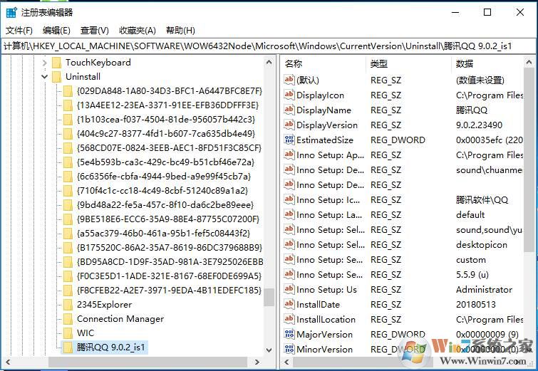 2、然后打開注冊表編輯器后,定位到HKEY_LOCAL_MACHINE\SOFTWARE\WOW6432Node\Microsoft\Windows\CurrentVersion\Uninstall