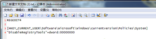 我們還可以利用網(wǎng)頁的文件(.htm)解鎖注冊(cè)表。如圖示在記事本中這樣輸入后另存為擴(kuò)展名為htm的文件,運(yùn)行就ok了。