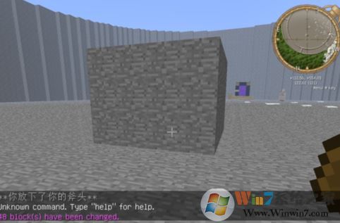 3.輸入圍墻指令://walls xxx(xxx是方塊ID)我輸入了//walls 1(石頭圍墻)