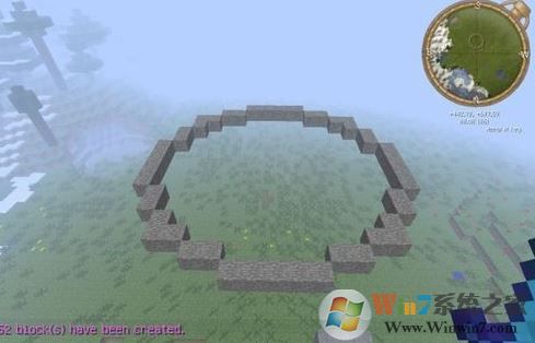1.輸入圓圈指令//hcyl xxx yyy(xxx是物品ID,yyy是半徑)我輸入了//hcyl 1 5(一個(gè)半徑為5的石頭圓圈),如圖所示: