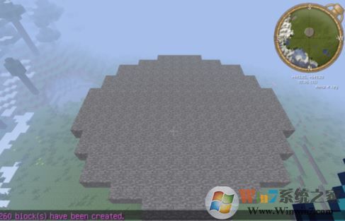 2.輸入圓形指令//cyl xxx yyy(xxx是方塊ID,yyy是半徑)我輸入了//cyl 1 5(一個(gè)以你為圓心,5為半徑的石頭圓形),如圖所示: