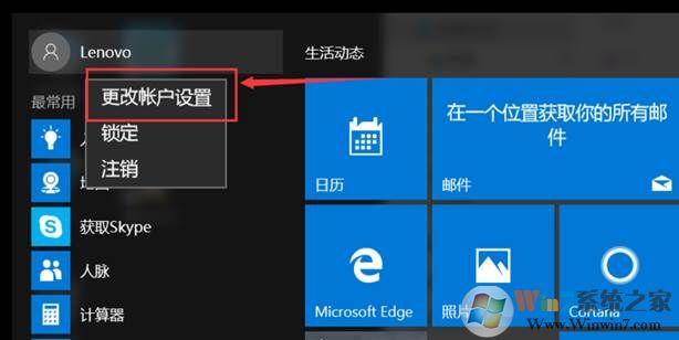 1、 點(diǎn)擊“開(kāi)始菜單”——選擇當(dāng)前賬戶頭像——選擇“更改賬戶設(shè)置”,如圖: