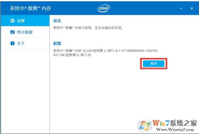 1、在系統(tǒng)下禁用:雙擊“Intel Optane Memory”,在設(shè)置->配置中點(diǎn)擊“禁用”,禁用完成后重啟電腦。