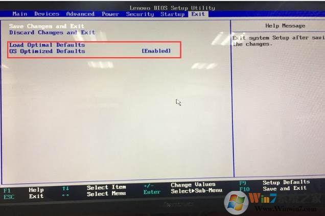 1、進(jìn)入Exit->OS Optimized Defaults設(shè)置為Enable;