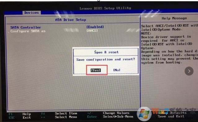 二、將BIOS setup->device->ATA drive setup->configure SATA as設(shè)置為AHCI。兩種方式二選一即可。