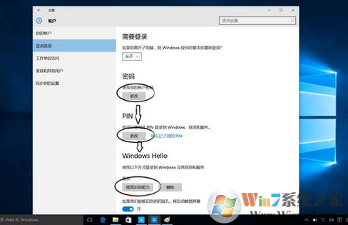 3、進(jìn)入賬戶分別按照下圖順序分別設(shè)置,密碼=>pin碼=>Windows hello