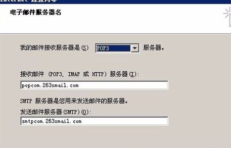 4、接著輸入263企業(yè)郵箱的收發(fā)服務(wù)器名稱(chēng);