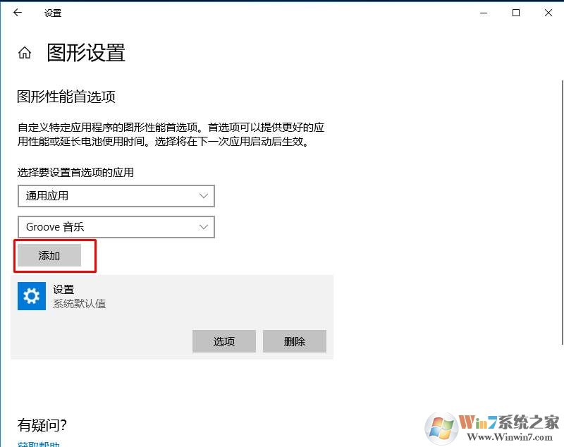 4、這時我們可以看到有很多可選擇的應用,找到你需要設置圖形性能的應用,然后點擊添加;