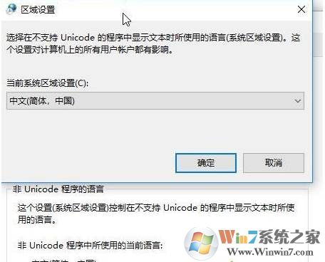 5、在下面點擊 更改系統(tǒng)區(qū)域設(shè)置,然后在 當(dāng)前系統(tǒng)區(qū)域設(shè)置 下拉菜單中選擇“中文”點擊確定 確定 保存設(shè)置即可。