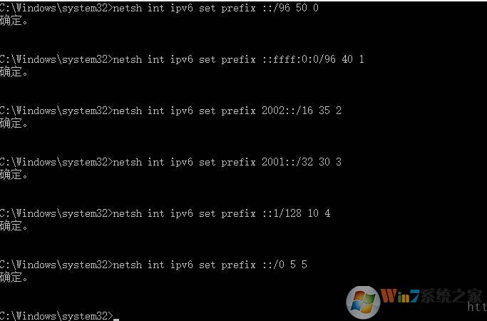 4、完了后輸入命令netsh interface ipv6 show prefixpolicies查看優(yōu)先級(jí):winwin7.com