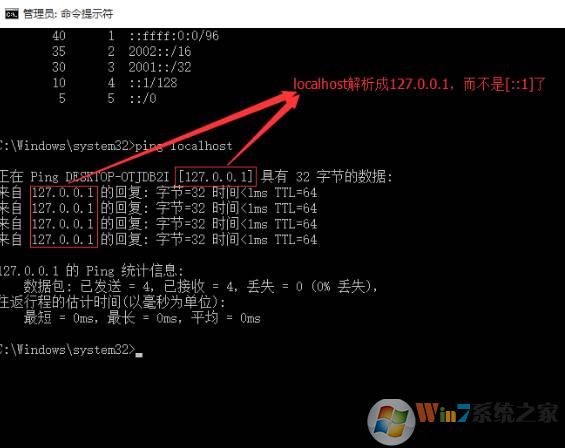 5、可以看到,此時(shí):: / 96,:: ffff:0:0/96優(yōu)先級(jí)高于::/0了。ping一下localhost,