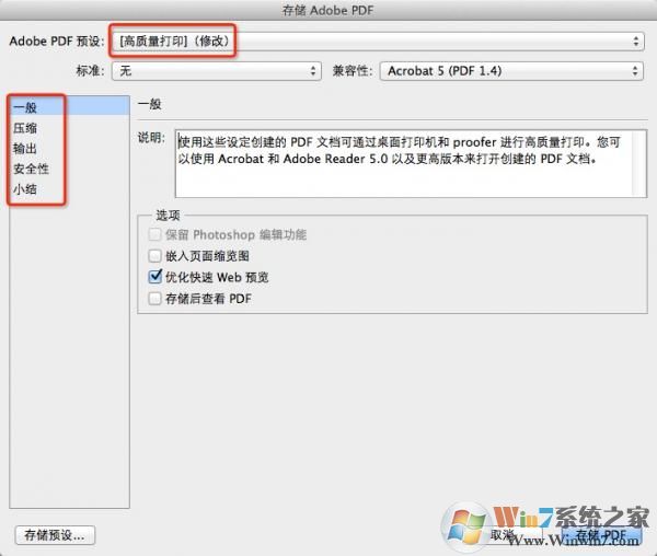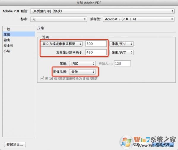 4、點(diǎn)擊儲存之后,這時我們還要設(shè)置一些參數(shù),如打印質(zhì)量的高低,壓縮屬性等等,質(zhì)量越高文件越大。
